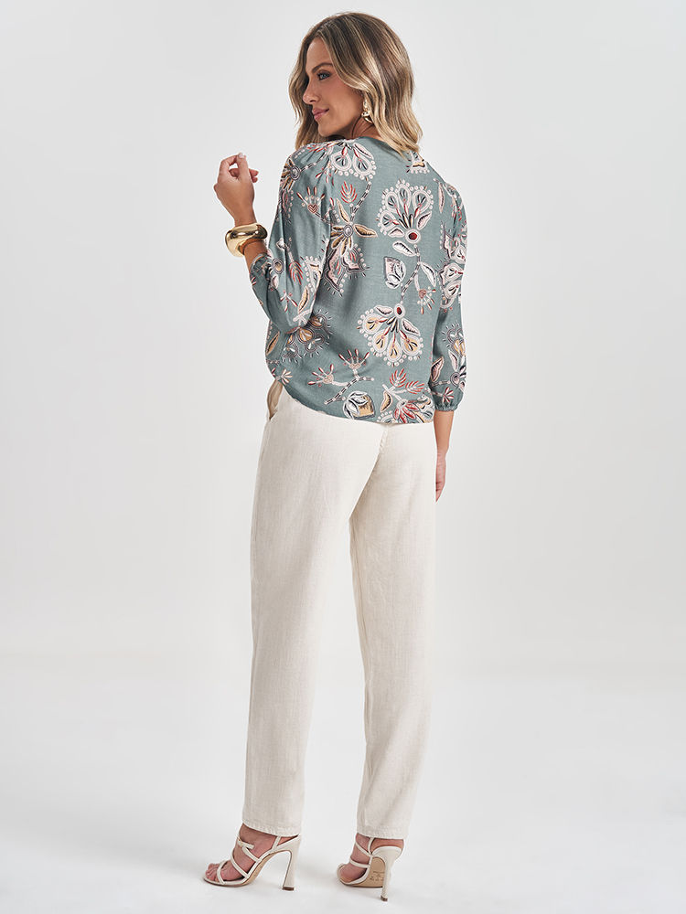 Blusa Manga 3/4 em Tule Estampada